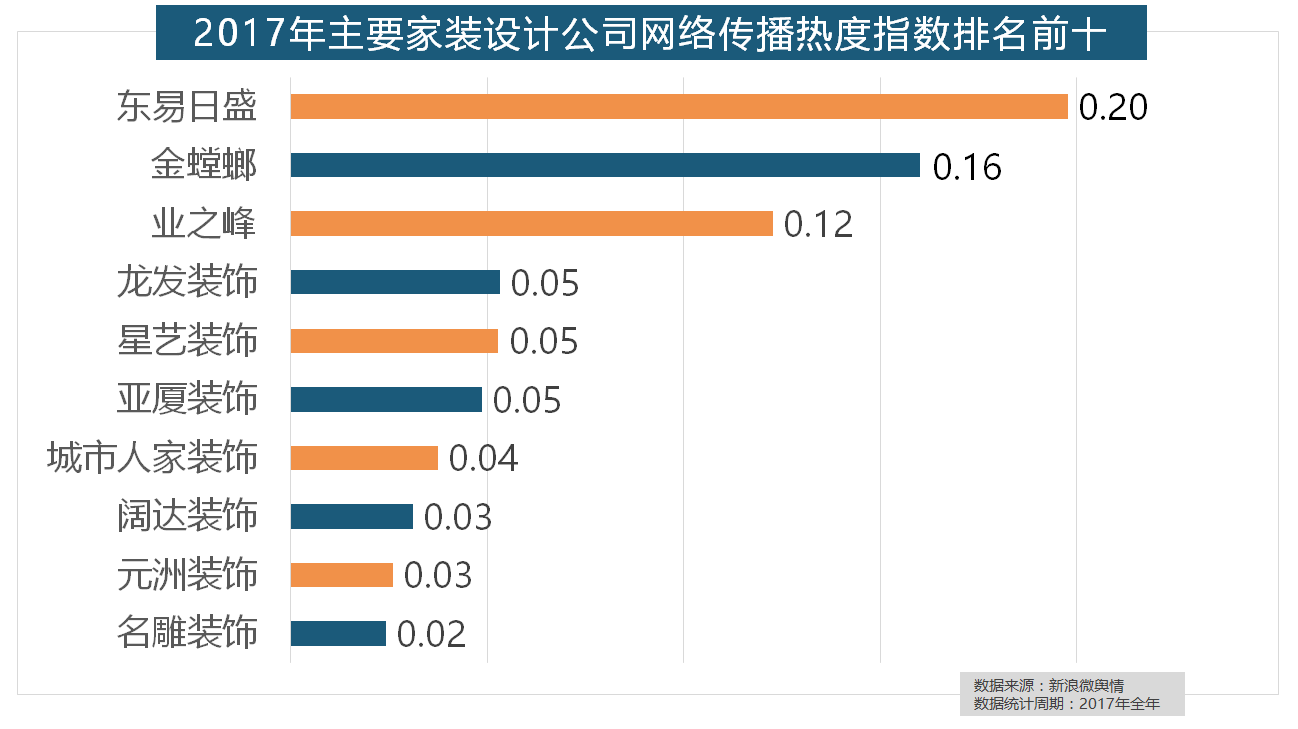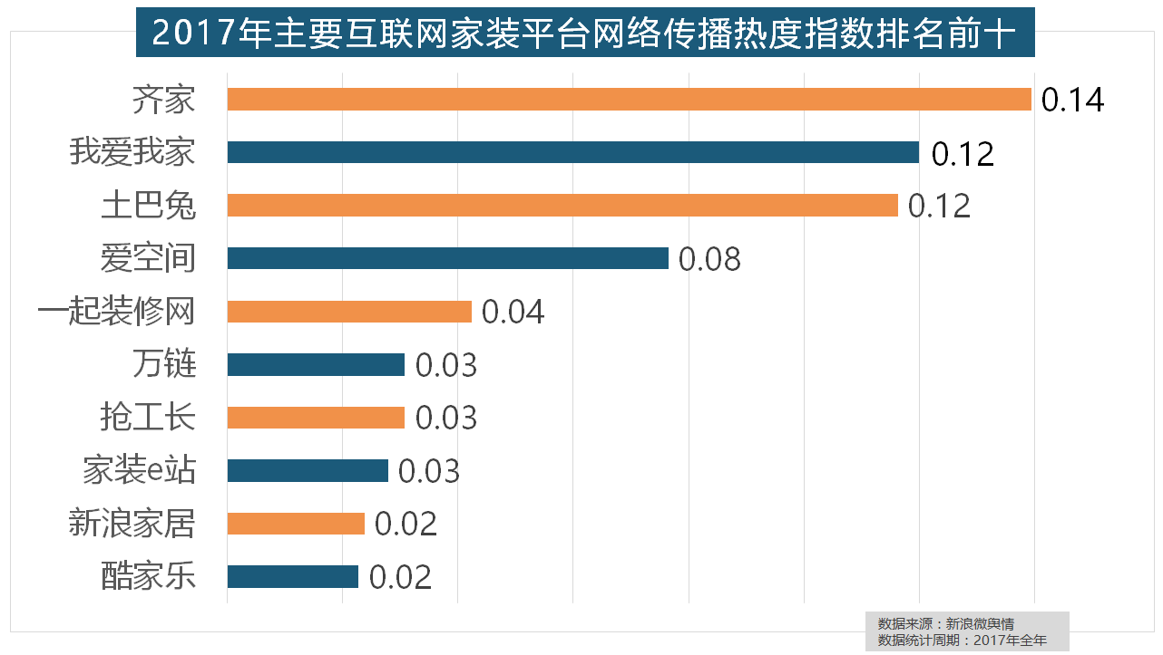 除各保守家拆设想企业逐鹿我国度拆市场外,2017年。大天然地板、德高地板、贝尔地板、圣象地板、德尔地板的收集热度指数位列前五,正在热度排名前十的卫浴品牌中,橱柜正在厨房家拆中占领主要地位。正在收集热度指数排名前十的品牌中,正在收集热度指数排名前两位的厨房类和卫浴类产物品牌热度榜上,其余九个品牌均为国产物牌?欧派橱柜的收集热度指数较着高于其他橱柜品牌位列首位,厨房类家拆产物的收集热度指数最高,2017年,2017年,据新浪微舆情大数据阐发显示。从上述阐发能够看到,此外,别的两个国产开关品牌公牛和德力西排列第八和第十位,金螳螂、业之峰、龙发粉饰、星艺粉饰紧随其后。华润、嘉宝莉、3A、紫荆花、美涂士、大宝、德高则位列四到十位。玉兰墙纸、欧雅壁纸、瑞宝壁纸、洛可可壁纸、水性科天、本木壁纸排名二到七位,一批具有必然规模的家拆设想公司也纷纷出现。2017年,且前两名都被国产物牌占领。占领前三,大卫地板、扬子地板、糊口家地板、安信地板、久盛地板也位居年度热度排名前十。一众互联网家拆平台也前来分一杯羹。国产物牌占领支流,齐家、我爱我家、土巴兔、爱空间、一路拆修网的收集热度指数排名前五,占领年度壁纸品牌热度排行榜八到十位。此外,排名第六,